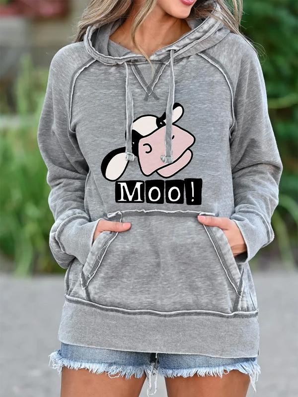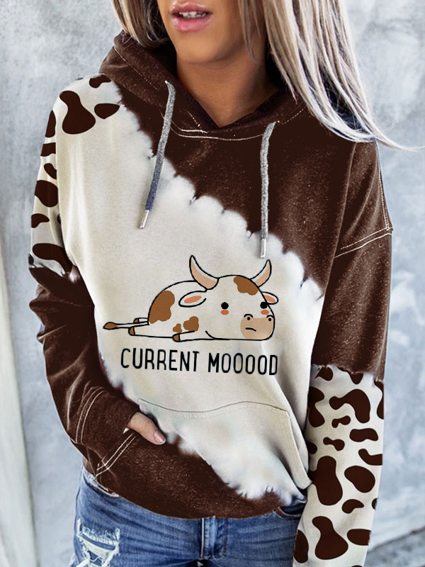 Women's Casual Cap Collar Cow Print Sweatshirt