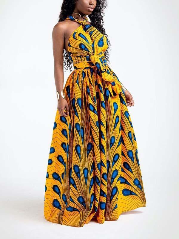 Ladies Elegant African Print Deep V-neck Sexy Dress