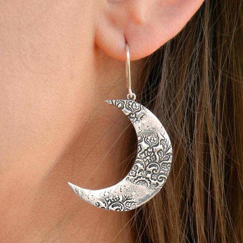 Women's Bohemian Style Retro Hollow Crescent Earrings