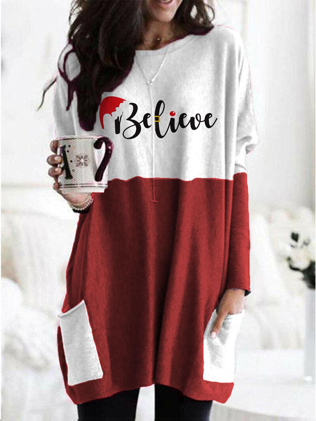 Women's Christmas hat Believe Graphic Print Sweatshirt