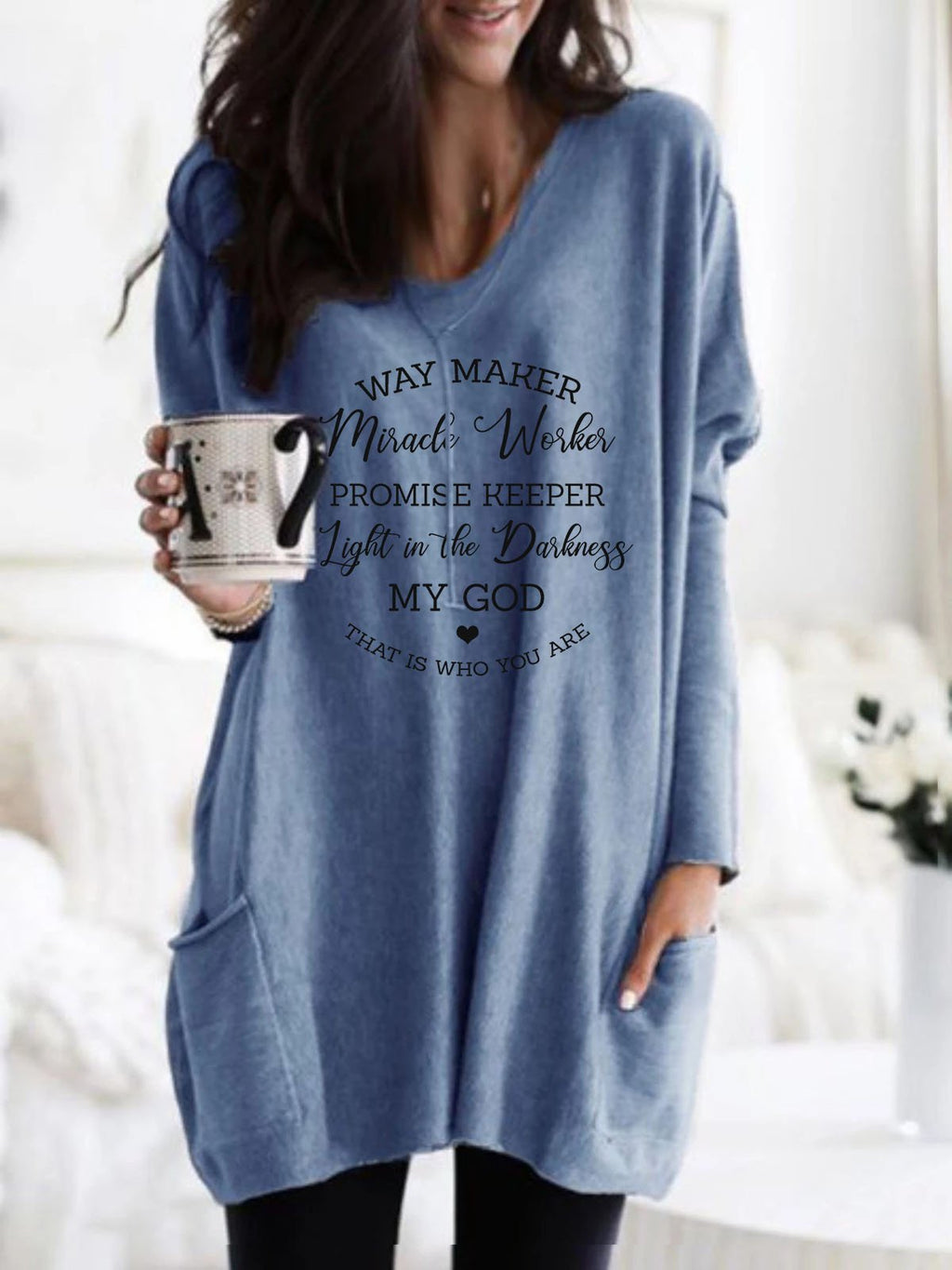 Women's Way Maker Miracle Worker Promise Keeper Light In The Darkness My God That Is Who You Are Printed Long T-shirt