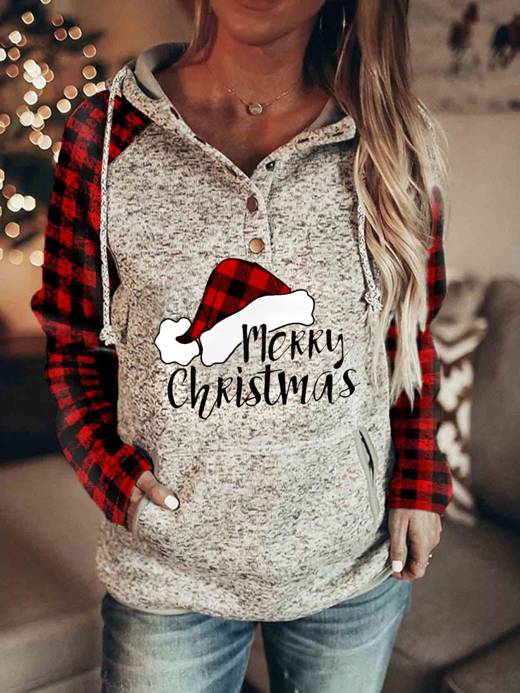 Women's Merry Christmas Print Plaid Sleeve Sweatshirt