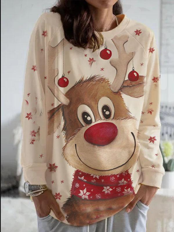 Women's Christmas Animal Print Long Sleeve Loose T-shirt