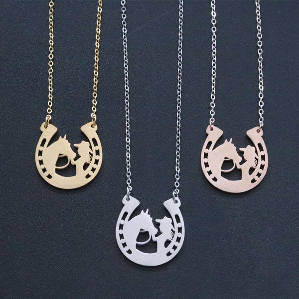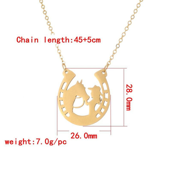 Simple lady Horse girl clavicle chain stainless steel horseshoe pendant necklace