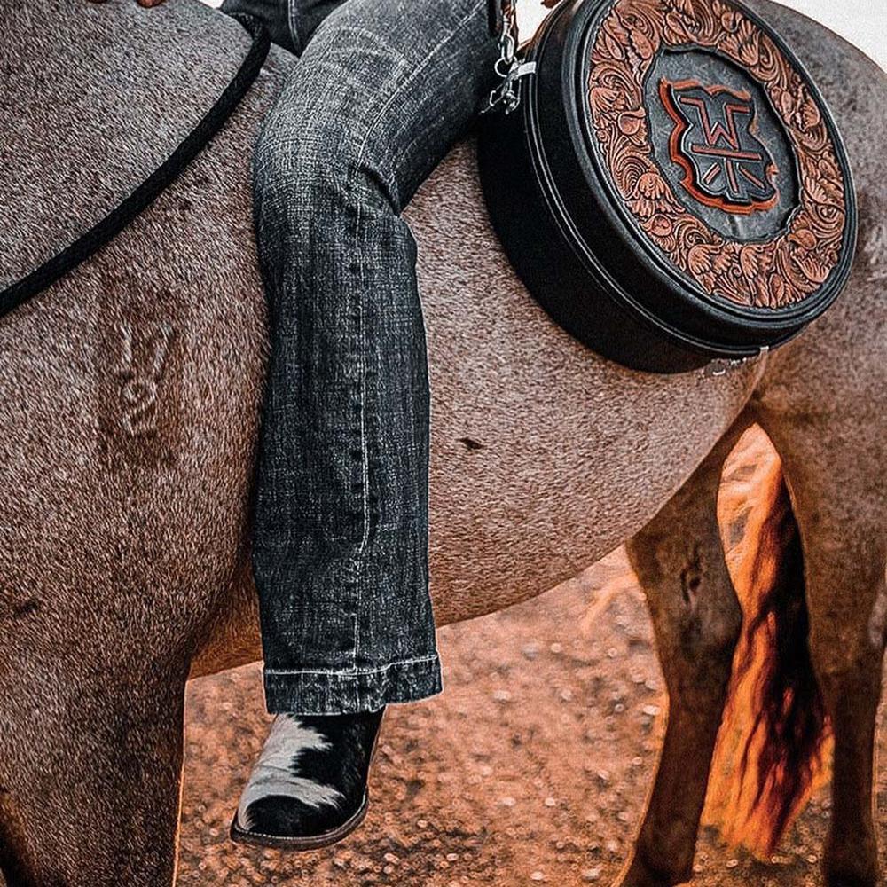 Women's Stretch Mid-waist Washed Cow Pattern Pocket Boot-cut Jeans