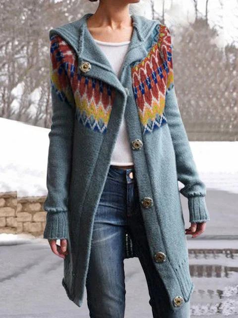 Vintage Western Geometric Print Patchwork Hooded Sweater