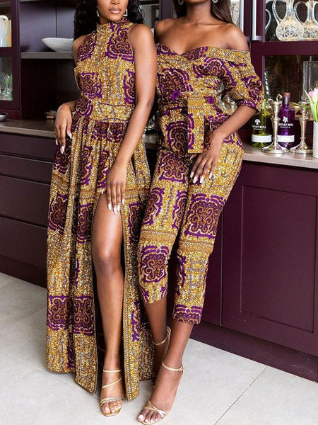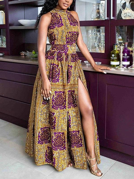 Women's Ankara Print Off Shoulder Sleeveless Slit Dress