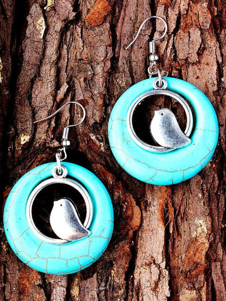 Bohemian Natural Turquoise Earrings Bird Nest Earrings