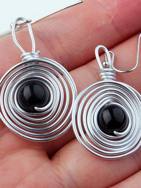 Natural bead Infinity Ring Earrings Vintage Punk Metal Winding Earrings