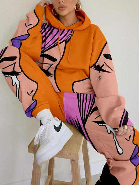 Two piece sets/ Co-ord Floral conventional knitting printing Micro-elasticity Knitted Cotton Cotton-Blend Autumn Winter Spring Casual